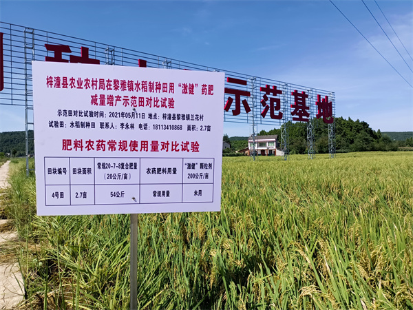 農藥化肥減量增效是推動農業綠色發展和農業生態環境治理的重要途徑,今年5月,四川省梓潼縣在黎雅鎮蘭花村選取4塊水稻制種田進行「激健」藥肥減量增產示範田對比試驗,平均每畝藥肥用量比常規種植方法減量30%左右。