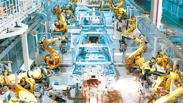 嵐圖汽車自動化率95%以上的焊裝車間