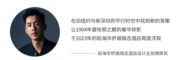萬豪國際集團作為世界著名的酒店管理公司,多年來隨著人們生活方式的更迭而不斷創新。它懂得城市區域發展的需要,更懂得人們內心對生活的渴望。基於華僑城·瑞灣府的地理區位,萬豪國際集團便推選只擇址城市“首善之地”的瑞吉酒店品牌,共築塔尖的奢華想像與品質體驗,以國際一流服務致敬城市塔尖生活範本。