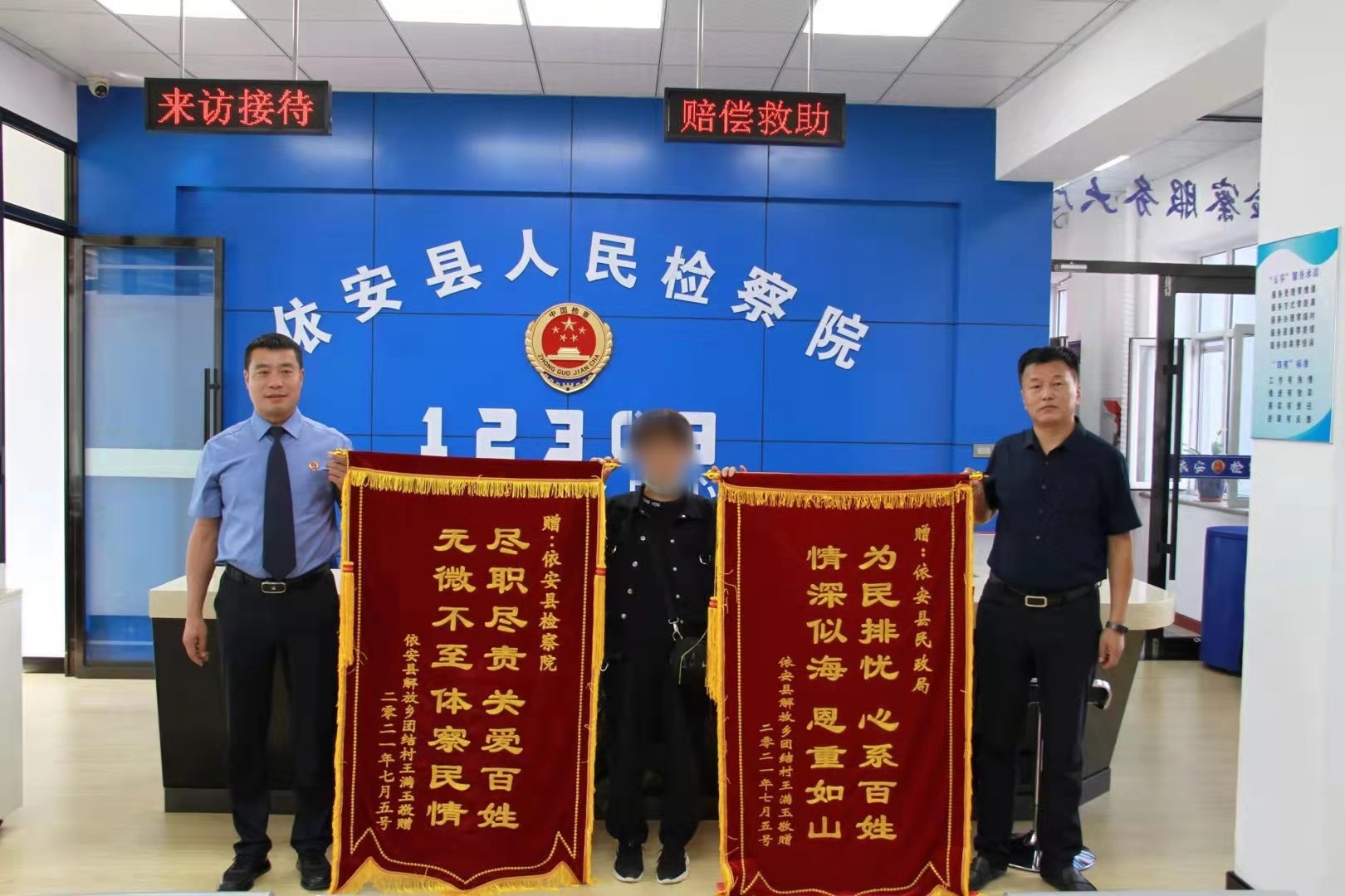 8月24日,孫新姐姐手捧一面錦旗來到依安縣檢察院,鄭重地送到了王亞強手中。