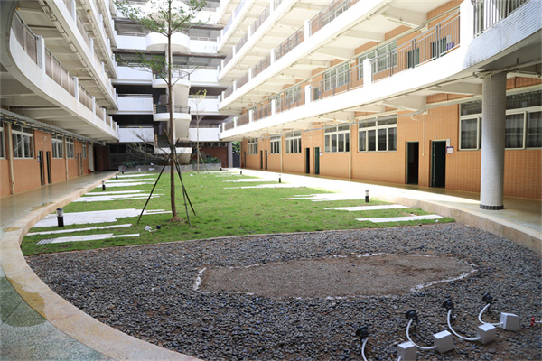 此外,教學樓中心庭院景觀改造、人文藝術樓三樓大廳天花板改造、一棟教工宿舍陽台改造、三區宿舍商業街綠化帶硬化改造、田徑場看台新建等工程也如期完工。