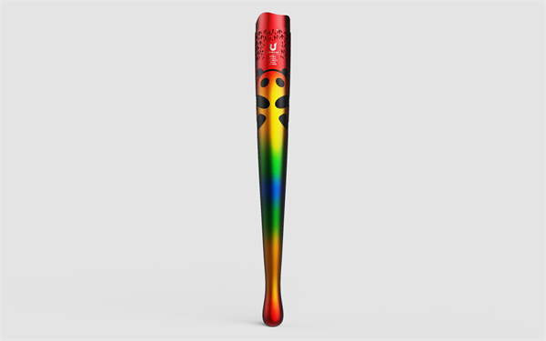 成都大運會火炬「蓉火」取成都的簡稱「蓉」,同時寓有「融合」之意,火炬運用多彩漸變的大運會主視覺色塊,通過朱紅、明黃、翠綠、湖藍四個漸變色完整地整合起來,呈現成都熱情、活力、時尚的多彩生活與大學生的斑斕青春。「圓融」,賦予太陽神鳥獨特之美,「包容」,讓成都城市別樣燦爛。
