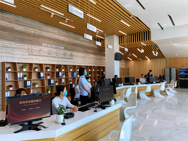 深哈產業園區政企服務中心位於園區黨群服務中心一樓,建築面積約為370平方米,中心設置諮詢服務區、自助服務區、休閒等候區、辦事服務區,其中辦事服務區設置11個辦事窗口,可辦理商事登記、社會事務審批、納稅申報、政策諮詢、人才公共服務等100餘項服務事項。為包括但不限於深哈產業園區26平方公里規劃範圍內的新設立企業、成熟企業、投資建設企業以及人才、群眾提供優質的「一站式」服務。