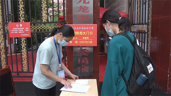 9月1日上午,在河南省葉縣九龍中學九年級學生的返校報到現場,在工作人員指引下,同學們佩戴口罩,保持間距,測量體溫、環境消毒嚴格按照返校報到流程順利完成報到手續。在學校各部門協同聯動、有序組織下,全方位排查校園內外安全隱患,確保全校師生平安健康返校。