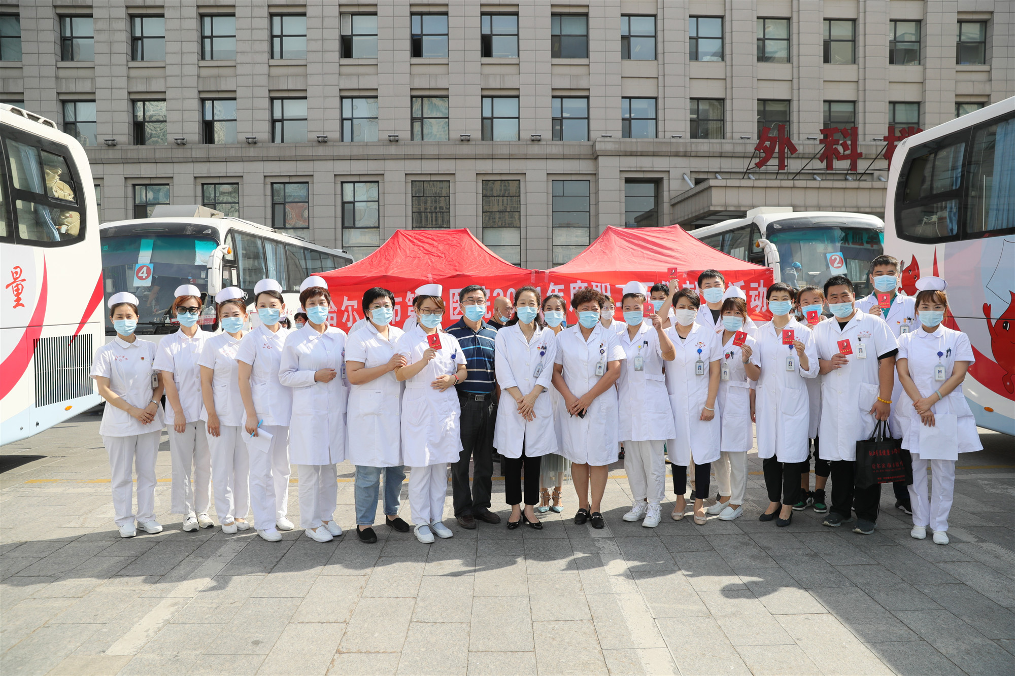 9月3日早晨,四輛獻血車魚貫駛入百年市一院。醫院廣場上,院黨委組織11個基層黨支部的中層幹部、醫療、護理、行政、後勤人員、黨員、積極分子兩百多人,秩序井然地列隊準備無償獻血。最終成功獻血219人,累計獻血量53680ml,百年市一院人用汩汩熱血踐行着醫務工作者甘於奉獻、大愛無疆的初心使命,以無私情懷和實際行動承擔社會責任。潺潺暖流傳大愛,汩汩熱血醫者心。