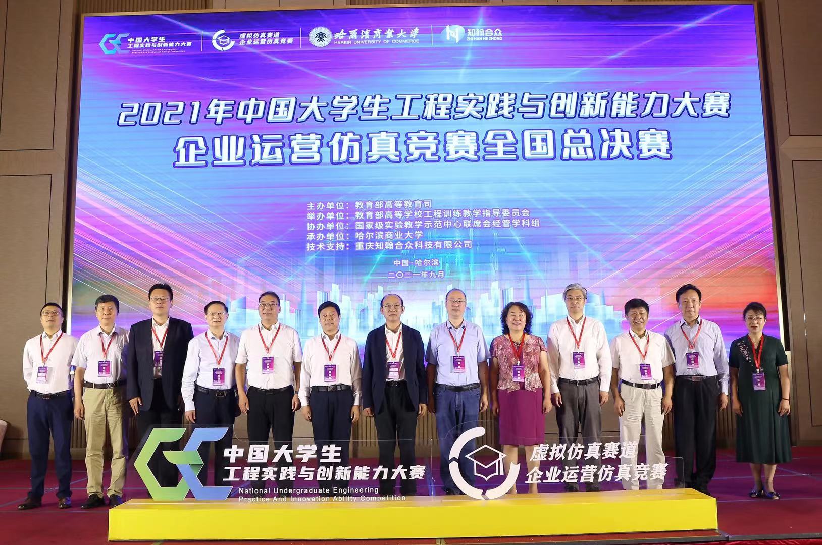 9月4日-5日,2021年中國大學生工程實踐與創新能力大賽企業運營仿真競賽全國總決賽成功舉行,大賽全程通過微信視頻同步在線直播,60所高校的60支團隊齊聚雲端參賽。大賽由教育部高等教育司主辦、教育部高等學校工程訓練教學指導委員會舉辦,哈爾濱商業大學承辦。哈爾濱商業大學校長鄭秋鶥主持開幕式。