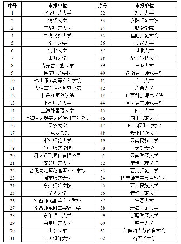 第二批國家語言文字推廣基地擬入選單位名單