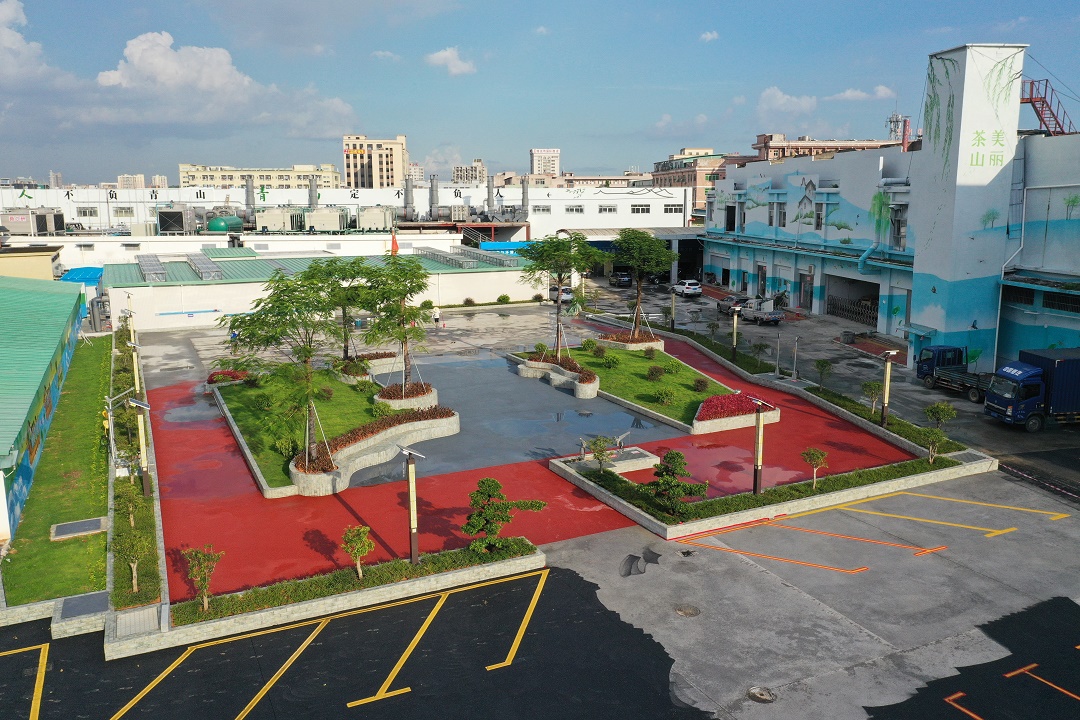從雜草叢生的荒廢地塊,到集公園、停車場、籃球場於一體的休閒公園,廣東省東莞市茶山鎮增埗村釗墩前池地塊發生翻天覆地的變化,公園周邊的外立面、商鋪也煥然一新,每天清晨、傍晚市民們都會在這休閒散步。而這個4000多平方米的公園底下還隱藏着能讓污水變清泉的「乾坤」——釗墩前池分散式污水處理站。這個地埋式污水處理站的建成,不僅有效節約土地資源,同時更是為茶山污水處理能力補短板。