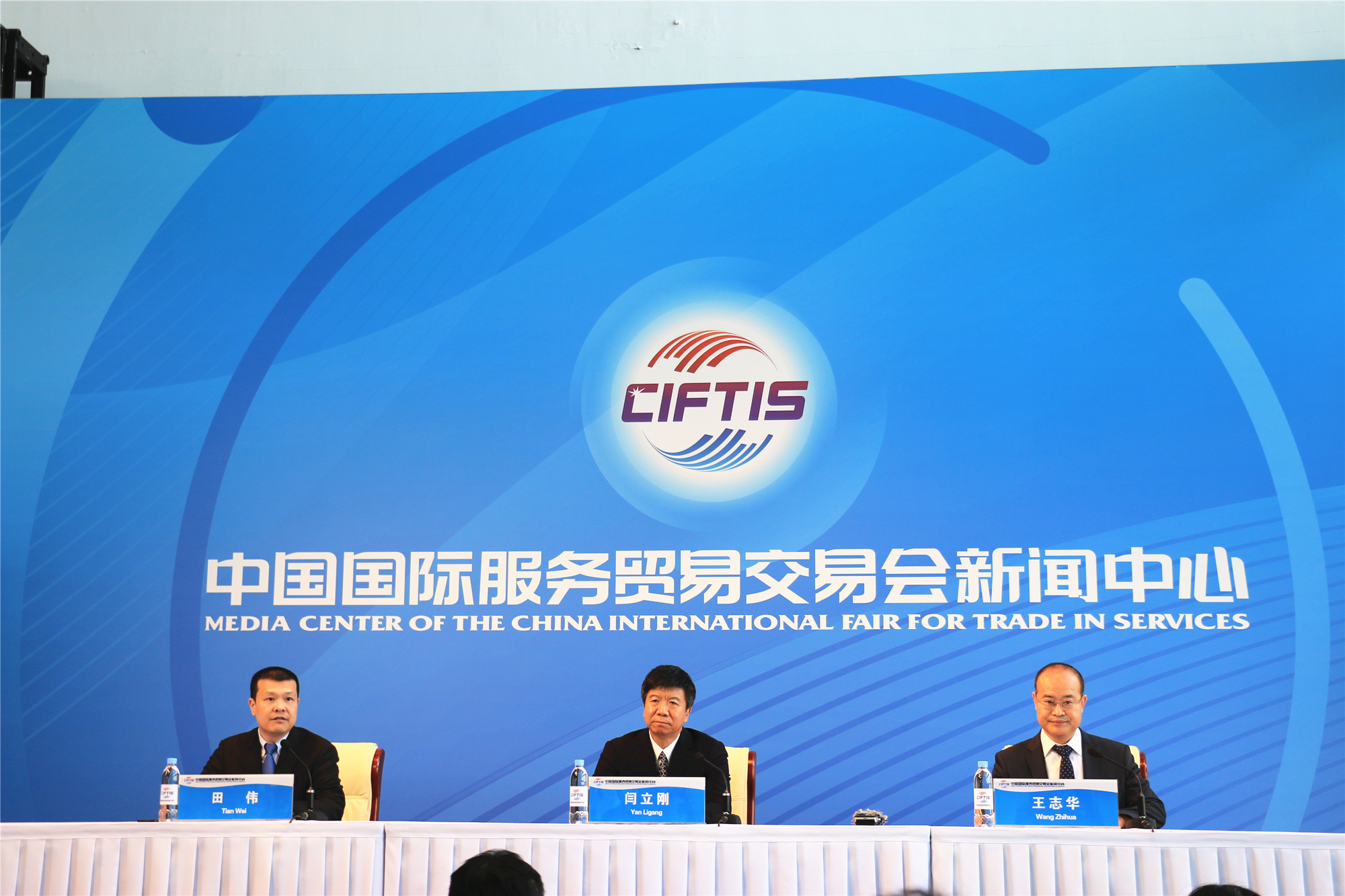 商務部服貿司二級巡視員王志華、服貿會執委會辦公室副主任、北京市商務局局長閆立剛出席發佈會。北京市委宣傳部對外新聞處處長田偉主持發佈會