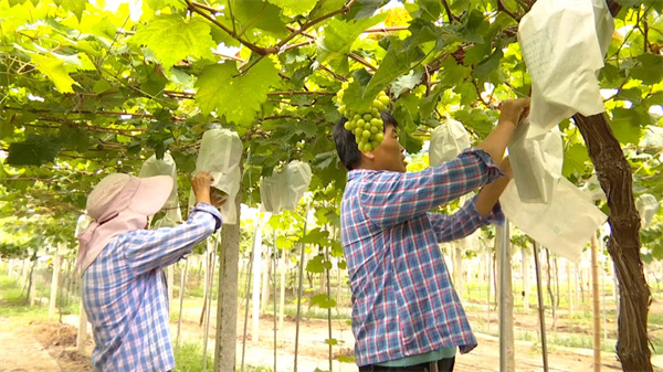 葡萄園內,棚內一串串沉甸甸的葡萄綴滿枝頭,陽光玫瑰品種的葡萄正值採摘期。走進果園深處,一片片獼猴桃果樹隨地勢蔓延開來,一串串飽滿碩大的獼猴桃果實掛在藤蔓上,讓人一看就垂涎三尺。
