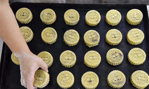 安徽省巢湖市烔煬鎮是座有着一千多年歷史的古鎮,當地手工製作月餅歷史悠久,一代又一代月餅製作藝人秉承師訓和祖傳秘方,將手工月餅酥香味美的老味道延續至今。中秋佳節將至,千年古鎮烔煬手工月餅進入生產旺季,月餅以精麵粉、核桃仁、瓜子仁、桂花、冰糖等食材作為主料,經手工製作而成。傳統方式烘焙的月餅承載着巢湖百姓記憶里的味道,深受市場歡迎。