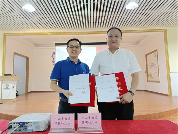今年教師節前夕,中山市錦龍教育文化發展有限公司旗下的西區華勝幼兒園、德明幼兒園與廣州城建職業學院開展長期合作,舉行簽約授牌儀式,錦龍教育董事長劉輝化與廣州城建職業學院學前教研室主任、副教授林培淼進行了校企合作簽約,共建大學生校外實踐教學基地。
