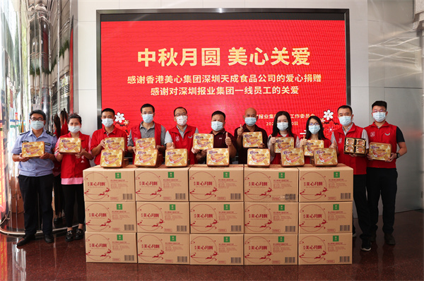 又逢中秋,丹桂飄香、美心暖心。9月10日上午,2000盒美心經典款月餅被送到深圳新聞重地,這是香港美心集團連續五年為深圳報業集團基層員工中秋送溫暖,表關愛。