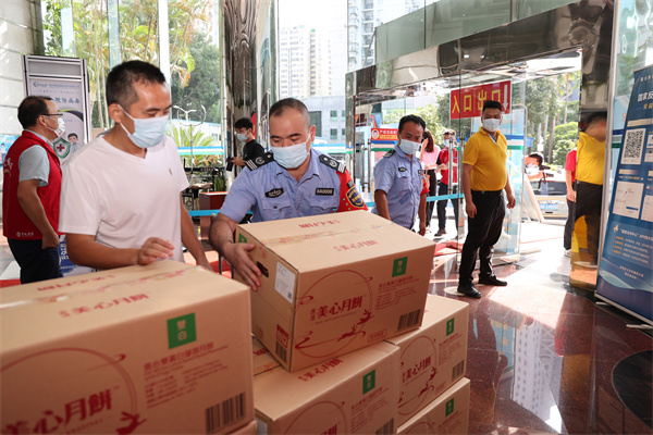 深圳天成食品有限公司是香港美心月餅的華南總代理,據公司董事副總經理林廣鋼介紹,這是連續第11年在深圳做月餅捐贈活動了。今年為鵬城送出的愛心月餅數量共有5000盒,價值為150萬元人民幣。除了深圳報業集團的2000盒,還有深圳市慈善會的2300盒,以及鹽田區民政部門700盒。(記者 黃鳳鳴 供圖 楊浩翰 )