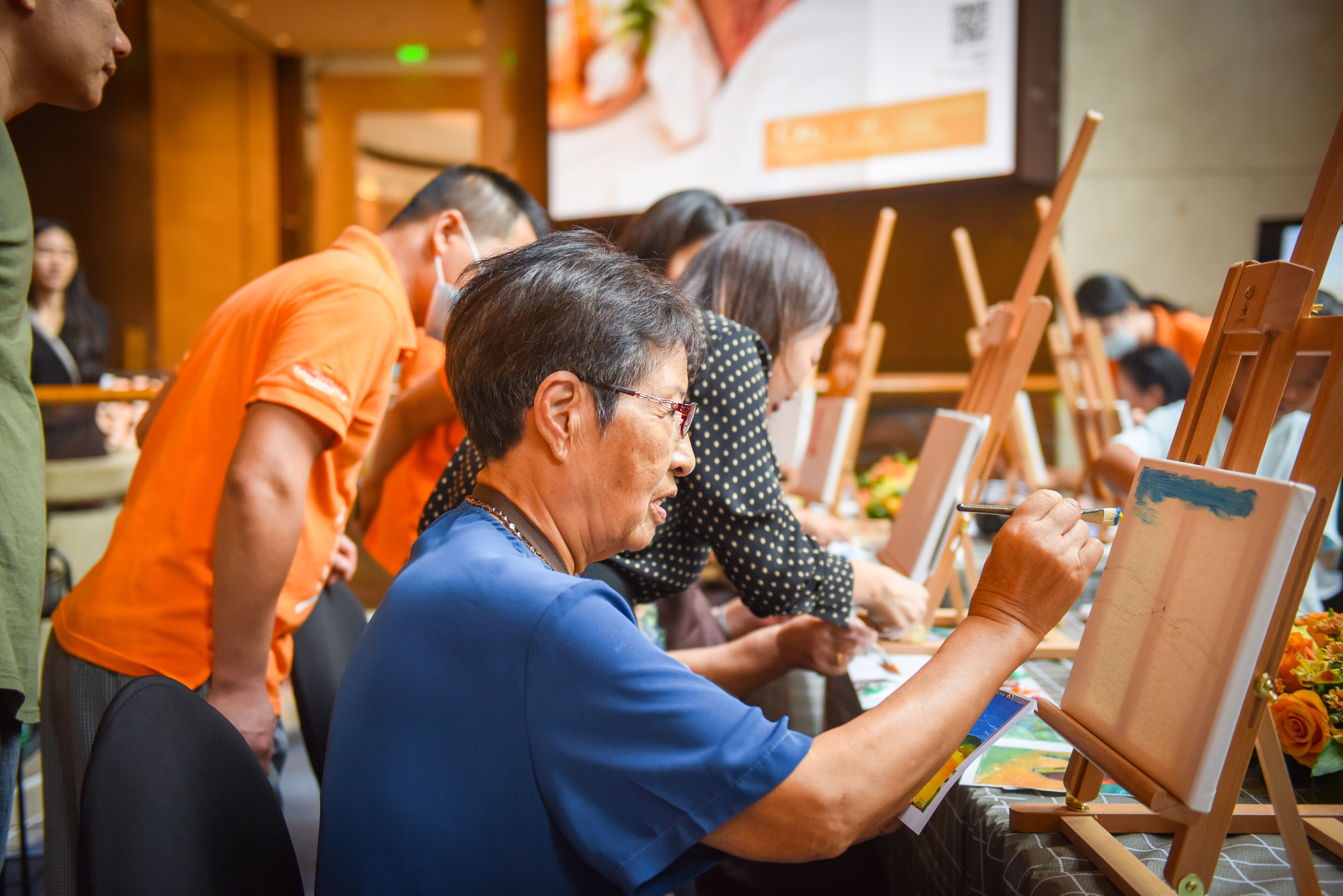 啟動儀式邀請到深圳愛心美術職業培訓學校專業老師為深圳福田香格里拉「以愛為家」項目關懷對象——來自福中社區的獨居長者及特邀嘉賓舉辦了一場圍繞「以愛為家」主題進行創作的公益油畫課堂。