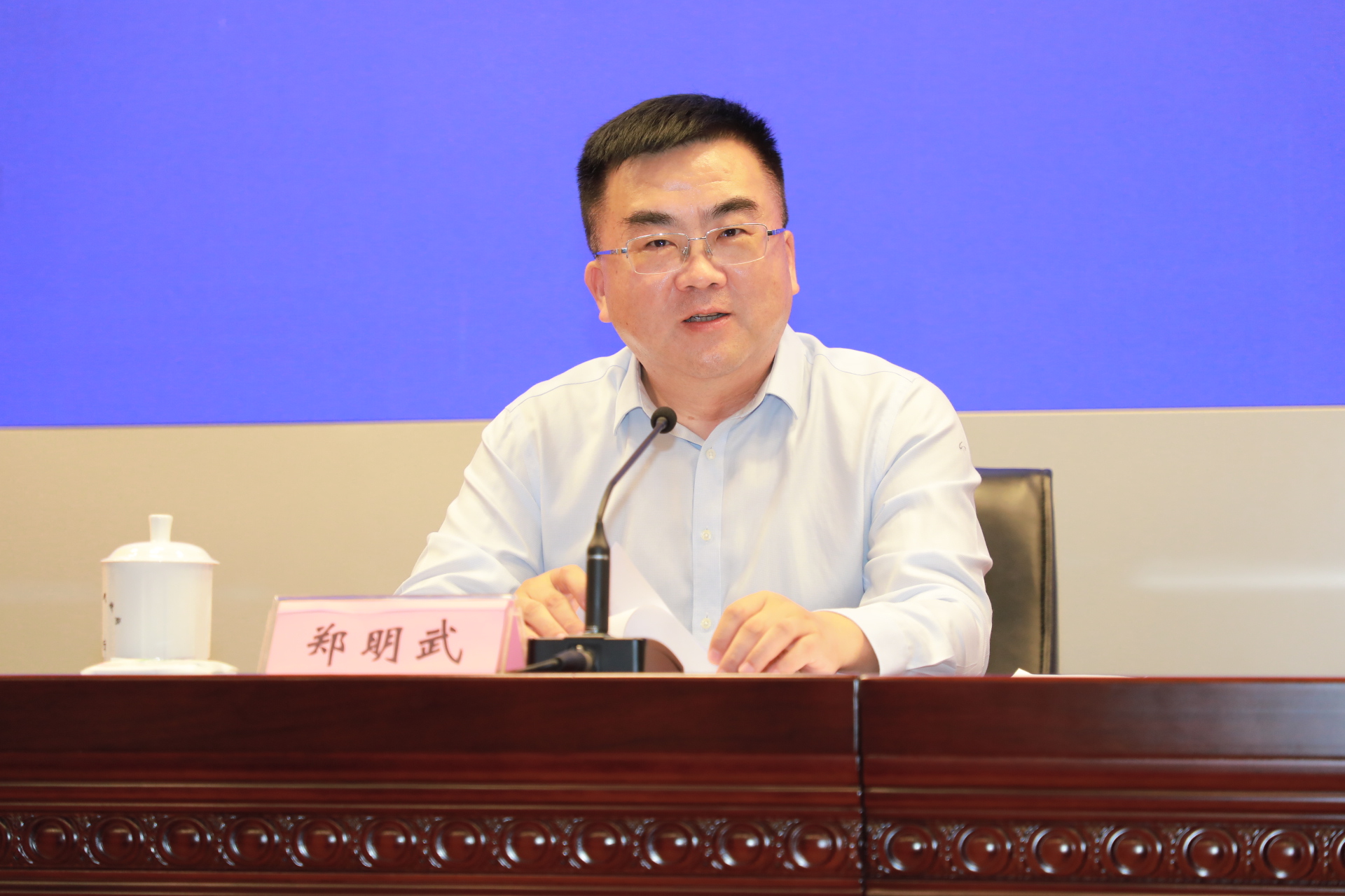 安徽省委宣傳部副部長、安徽省人民政府新聞辦公室主任鄭明武主持「2021合肥農交會」新聞發佈會。