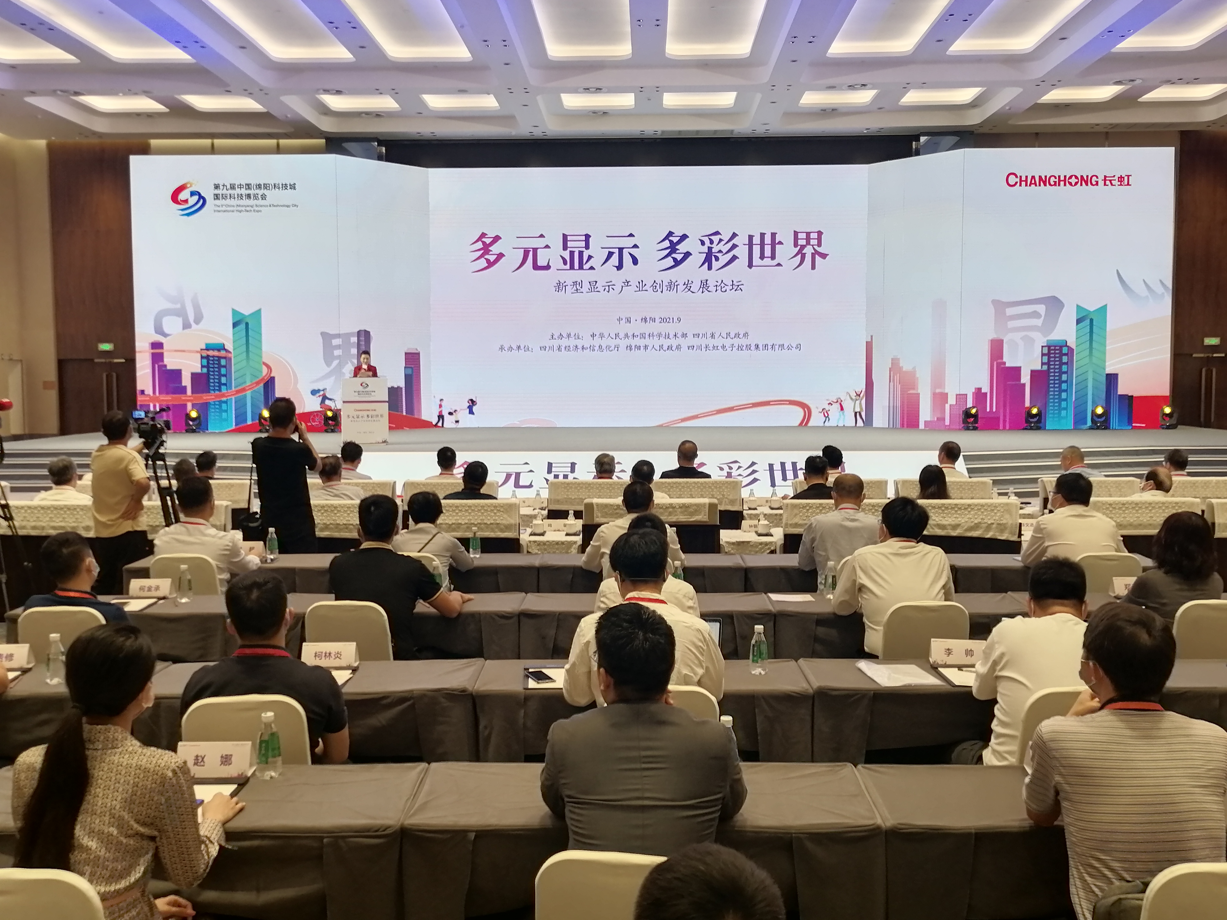 9月10日,第九屆中國(綿陽)科技城國際科技博覽會「新型顯示產業創新發展論壇」在四川省綿陽市舉行。長虹、京東方、TCL華星光電、等顯示產業上下游企業,以及中國工程院、國際信息顯示學會、北京航空航天大學、清華大學、四川大學等200餘位嘉賓共同探討新型顯示產業創新發展之路。
