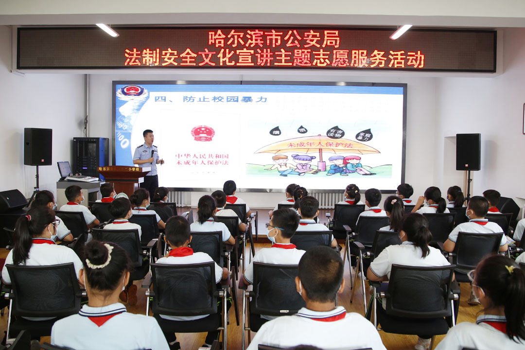 「同學們,讓我們共同學習一些與大家相關的法律常識和安全防範知識……」這是哈爾濱市公安局平房分局保國街派出所民警郭東旭,正在為哈爾濱市保國第二小學校的同學們上法制安全文化宣講課的場景。9月10日,哈爾濱市公安局法制安全文化宣講主題志願服務活動全面啟動,民警走進教室為全市小學生上開學季「法制安全第一課」。