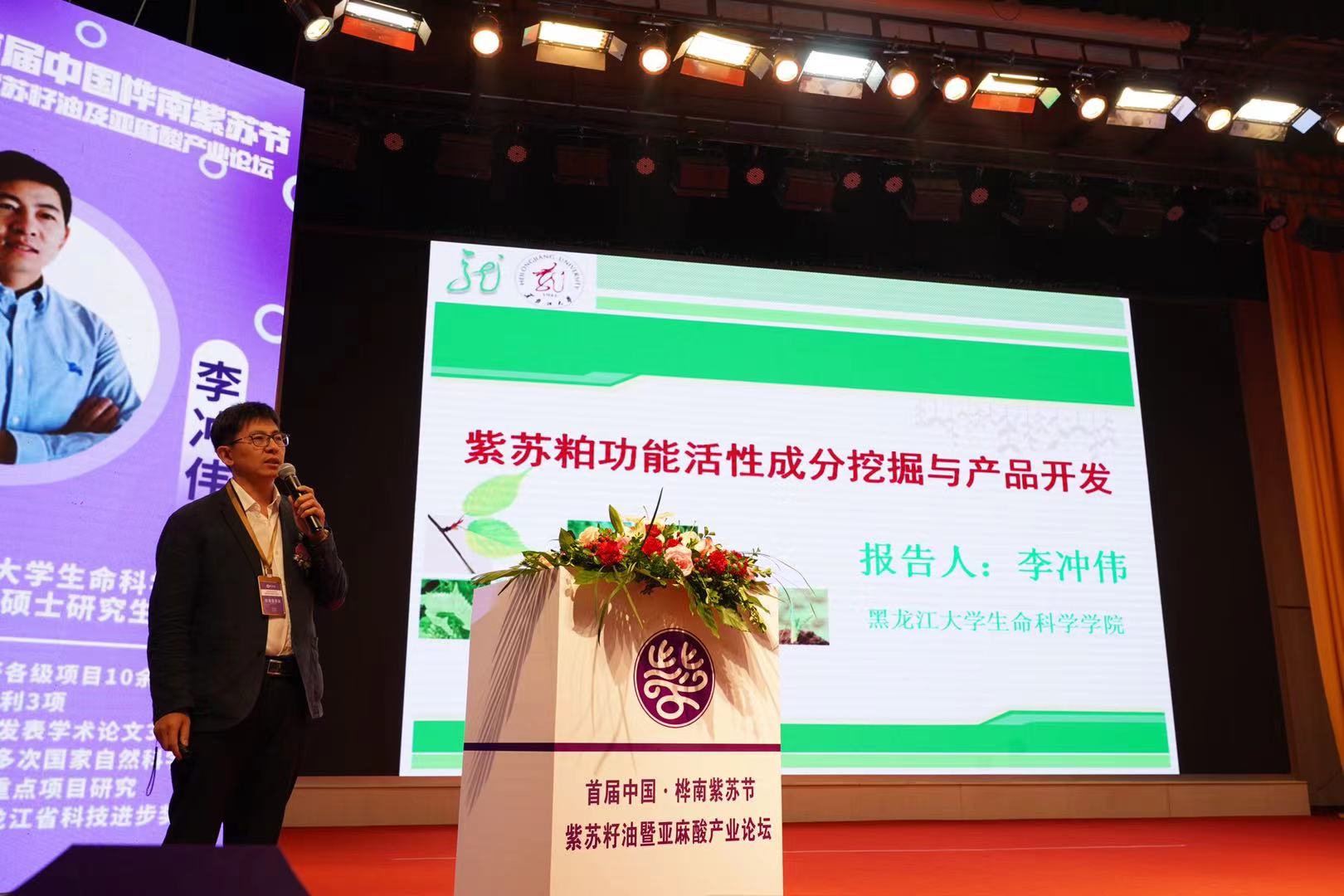 黑龍江大學生命科學學院教授李沖偉在做關於《紫蘇粕功能活性成分挖掘與產品開發》學術報告時,從不同比例亞麻酸/亞油酸對小鼠急性肝損傷的修復作用、紫蘇籽多糖分離純化及抗腫瘤活性研究、紫蘇粕抗菌肽製備及抑菌活性、紫蘇粕餅乾產品開發四方面做詳細介紹。他表示,目前市場紫蘇油產品供大於求,紫蘇粕產量大,利用價值高,但開發利用程度低。未來可加大紫蘇高附加值產品開發力度、提高紫蘇粕高值化利用水平、選育高蛋白抗逆紫蘇新品種。