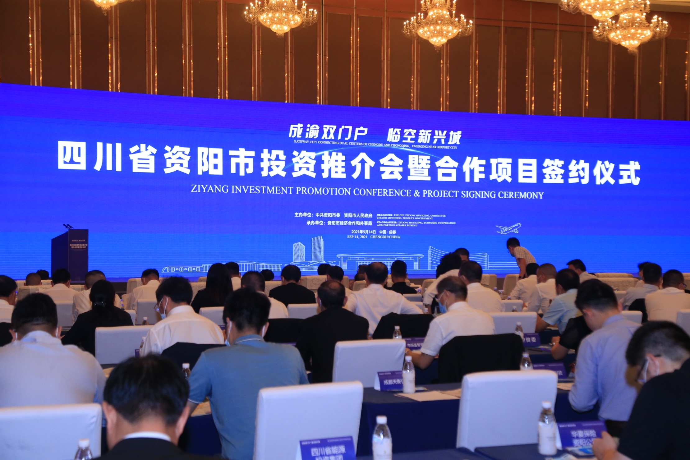 9月14日,「成渝雙門戶 臨空新興城」四川省資陽市投資推介會暨合作項目簽約儀式在成都舉行。推介會現場集中簽約23個項目,涵蓋電子元器件、智能終端、口腔裝備材料、醫療器械、綠色食品、高端商業等產業細分領域。