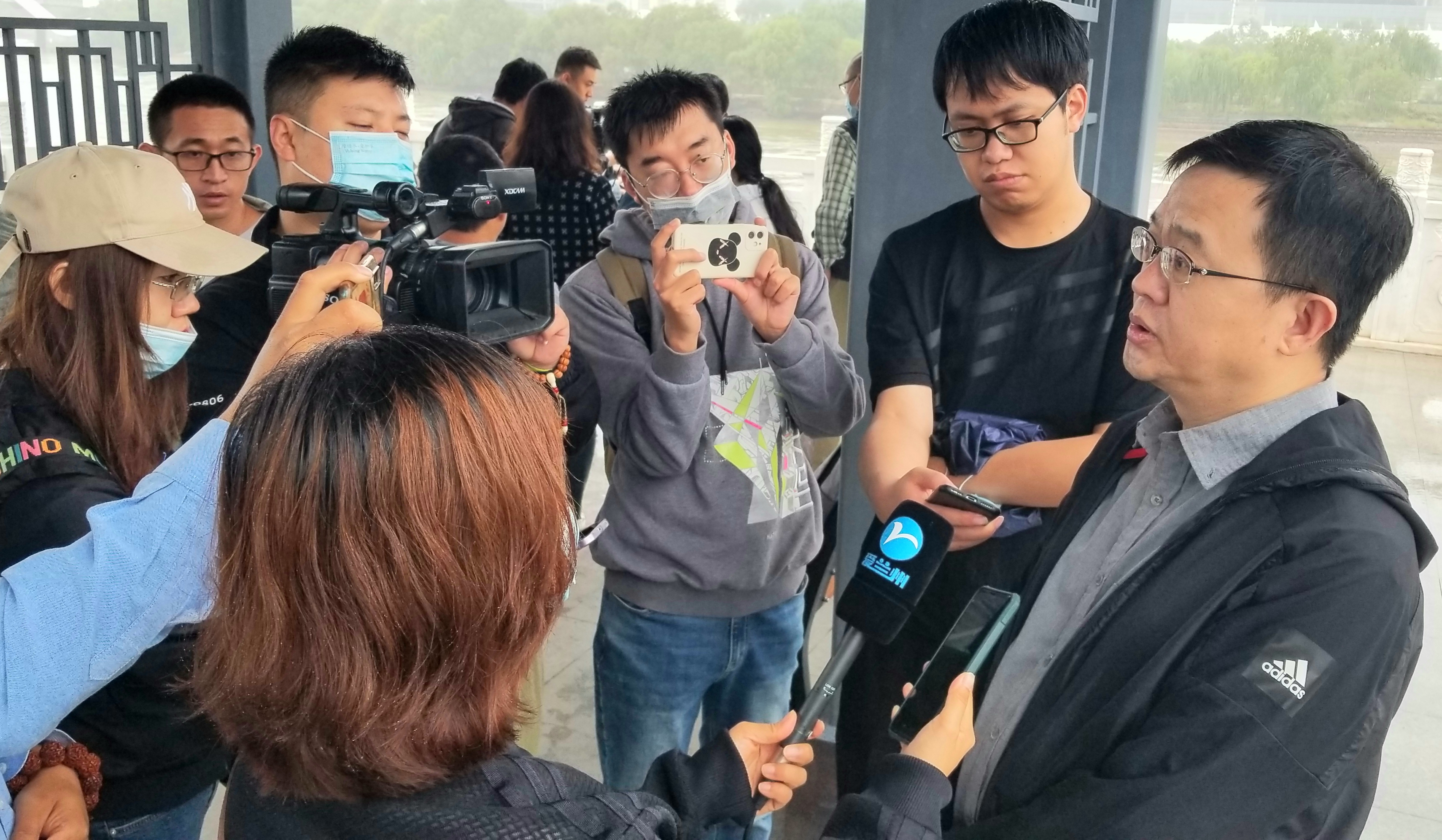 採訪團團長、香港商報副總編王軍接受當地媒體採訪
