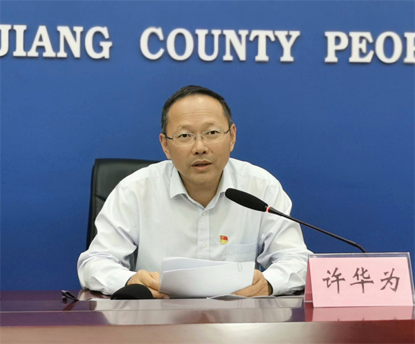 廬江縣委書記許華為介紹總體情況(孫軍/攝)