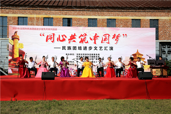 9月15日上午,由瀋陽市民族和宗教事務局、瀋陽市鐵西區民族和宗教事務局、瀋陽市鐵西區文化旅遊和廣播電視局主辦的「同心共築中國夢 」民族團結進步宣傳月暨慶中秋文藝演出在鐵西區奉天工場平台式融合工業園舉行,鐵西區各民族同胞代表歡聚一堂,活動以民族歌舞、戲曲、管弦樂、模特表演等多種形式,展現了鐵西區民族團結進步的良好精神風貌。