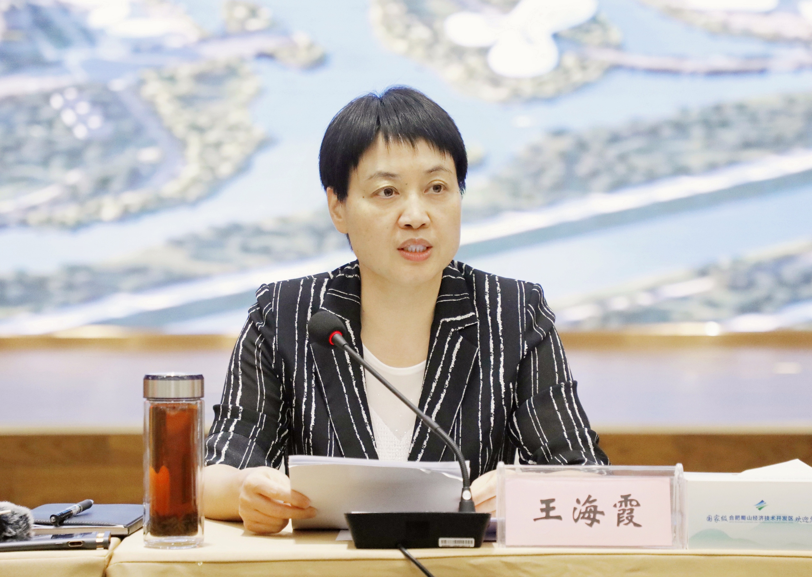 中共合肥市蜀山區委書記王海霞介紹總體情況(孫軍/攝)