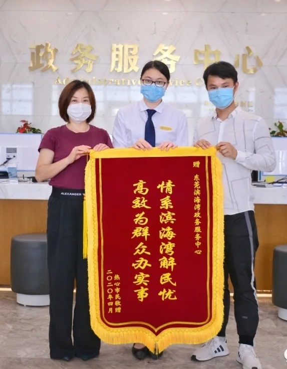 類似的事情在中心時有發生,工作人員的服務態度常常受到市民群眾的表揚。「這裏的辦事人員服務很好,熱情地幫我解決問題。」「工作人員的服務態度超級好,點讚!」,還有民眾送來錦旗,表達他們對政務服務中心的感謝。