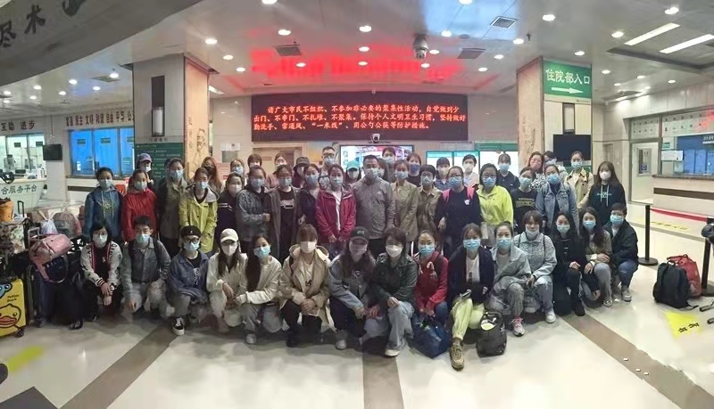 2個小時,護理部、醫務科、設備科及各臨床科室緊密配合,1名醫生及50名護士迅速集結,防護服、口罩、面屏、手消、護目鏡等物資充足配備,51人收拾簡單行囊白衣執甲,逆行出征。她們還沒舉起舉家團圓慶祝佳節的酒杯,沒有與愛人分享一塊美味的月餅,來不及畫上美美的妝容,匆忙中有人還拍着腦袋說忘記帶了牙刷……她們忘記了口罩下咬緊的牙關、護目鏡里眼神的堅定,是最動人的美顏。舍小家為大家,中醫大二院人甘於奉獻、大愛無疆的精神在蔓延,凝聚力就是最強大的戰鬥力,是對救死扶傷最動人的詮釋。
