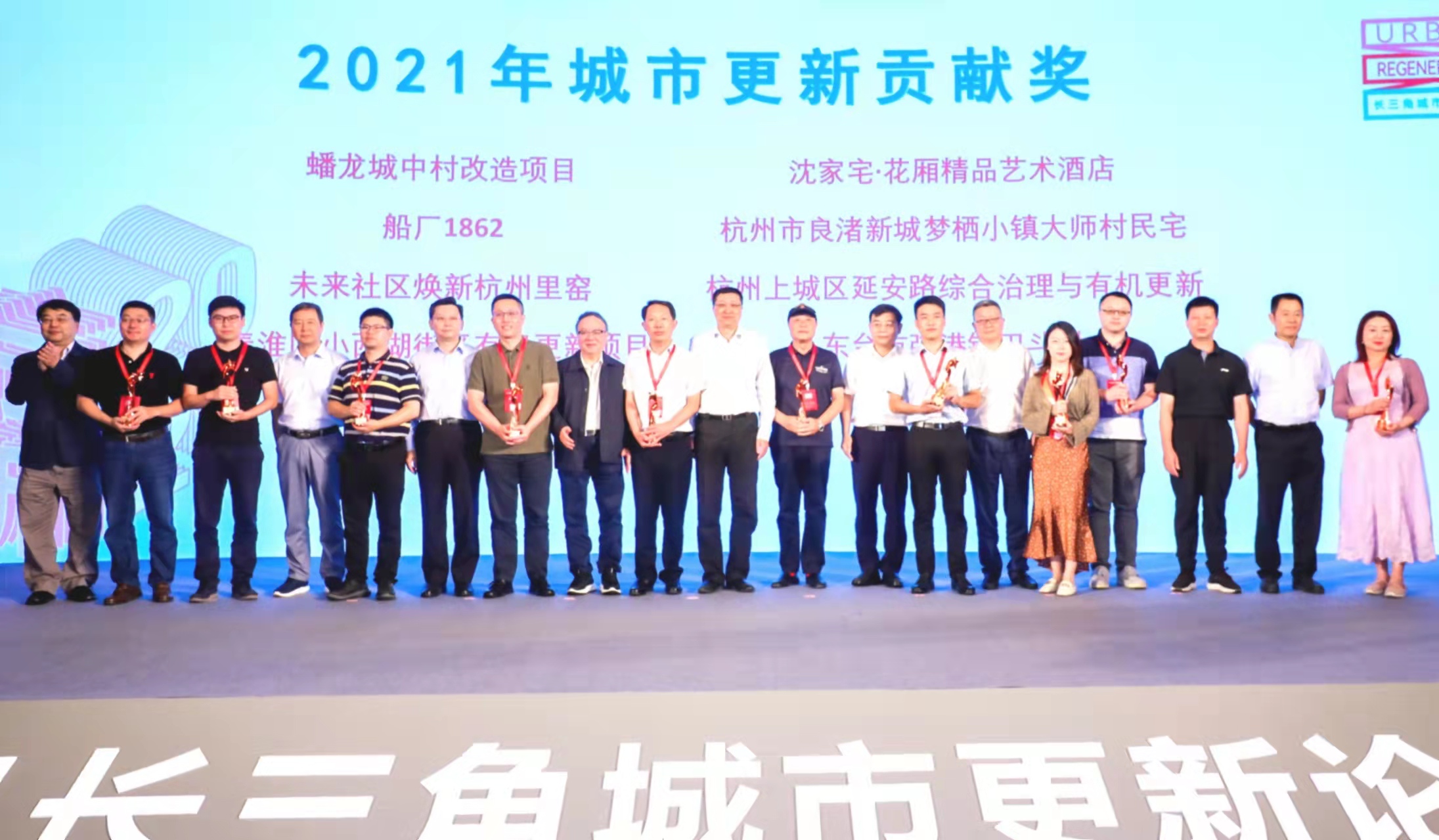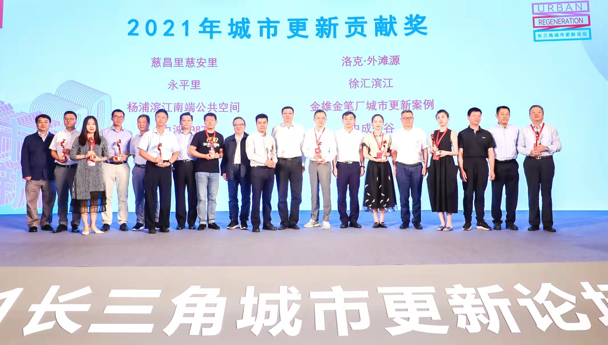 本次論壇現場還舉行了2021年城市更新貢獻獎頒獎儀式,發佈2021年城市更新發展系列報告。上海現代服務業聯合會常務副會長陳振鴻,上海現代服務業聯合會副會長孫建平,上海現代服務業聯合會副會長兼秘書長李關德等分別為ART愚園、武夷路城市更新、長寧區光大安石中心項目、寶地·新華大廈、上生·新所、錦和越界陝康里、錦滄文華廣場、百聯TX淮海 | 年輕力中心、8號街坊「承興里」、德必外灘WE」、慈昌里慈安里、洛克·外灘源、永平里、徐匯濱江、楊浦濱江、金雄金筆廠城市更新案例、力波啤酒廠、中成智谷、雲間糧倉文創園、寶能·未來空間、蟠龍城中村改造項目、沈家宅·花廂精品藝術酒店、船廠1862、杭州市良渚新城夢棲小鎮大師村民宅、杭州上城區延安路綜合治理與有機更新、未來社區煥新杭州里窯、秦淮區小西湖街區有機更新項目、東台市弶港鎮巴斗村、合柴1972文創園、徽州老宅頒發獎項。