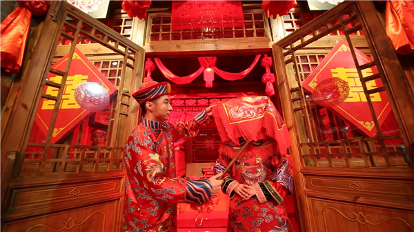 跨馬鞍、過火盆、邁雙斗……9月24日、25日晚,隨着傳統滿族婚禮司儀一聲聲的吶喊,以及圍觀群眾不時迸發的歡呼聲,一場沉浸式滿族民俗婚禮展演活動中街上隆重上演,這也是中央里文化旅遊景區在十一前夕為廣大遊客呈現的沉浸式、體驗式的民俗文化大戲,並將在中街常態化上演。