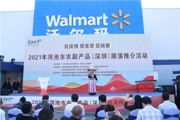 當天下午,2021年河池市農副產品(深圳)路演推介活動在深圳市沃爾瑪(香蜜湖店)舉行,河池市商務局副局長莫加京在致辭中表示,舉辦這次路演推介活動,目的是為企業搭建一個展覽展示、採購對接、洽談合作、分享經驗的重要平台。