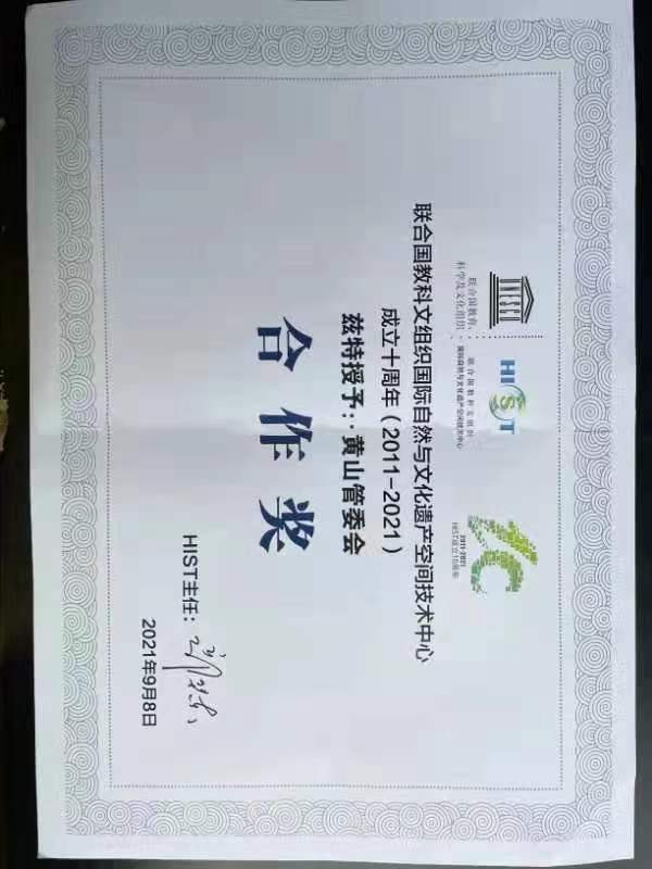 記者9月26日從安徽黃山獲悉:日前,黃山風景區管委會獲得聯合國教科文組織國際自然與文化遺產空間技術中心(HIST)頒發的合作獎,HIST主任郭華東院士在頒獎詞中指出:這一獎項的頒發是為了嘉獎黃山在支持可持續發展目標上做出的研究與努力,以及為推動聯合國教科文組織名錄遺產保護和可持續利用方面做出的創新性貢獻。
