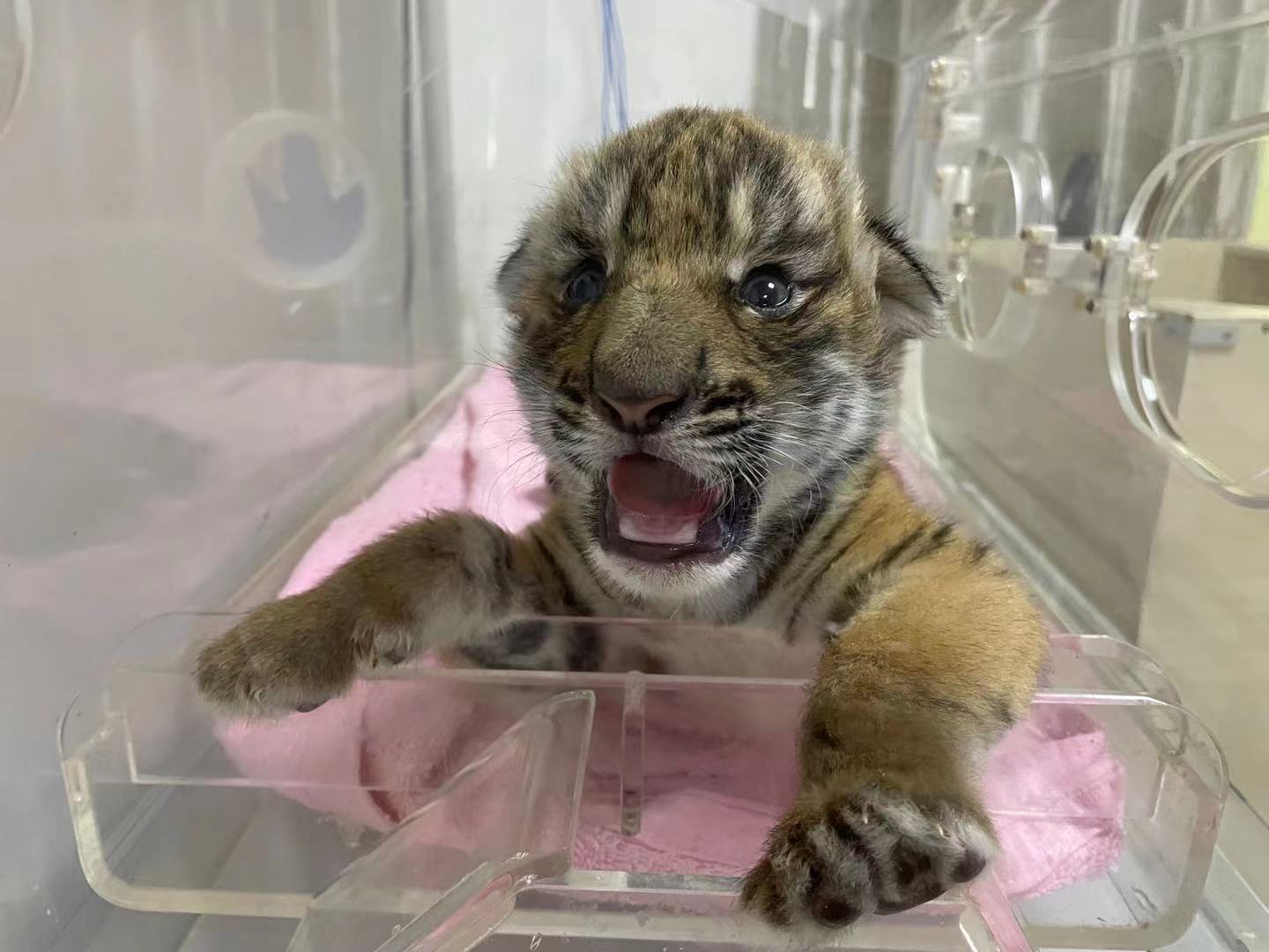 目前,虎寶寶已經在保育箱裏待了20多天,雷勝橋介紹,隨着虎寶寶的體重逐漸增加,保育箱的空間已經不夠讓虎寶寶活動,接下來,他們將會把虎寶寶轉移到空間更大的活動箱。
