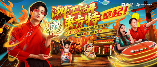 在十一國慶来临之際,四川綿陽方特國慶期間將推出全新「潮江湖來方特,整起!」主題活動。從早上九點到晚上九點,用江湖味、江湖秀和江湖情為祖國慶生,也為廣大遊客打造一個獨一無二的方特潮江湖。