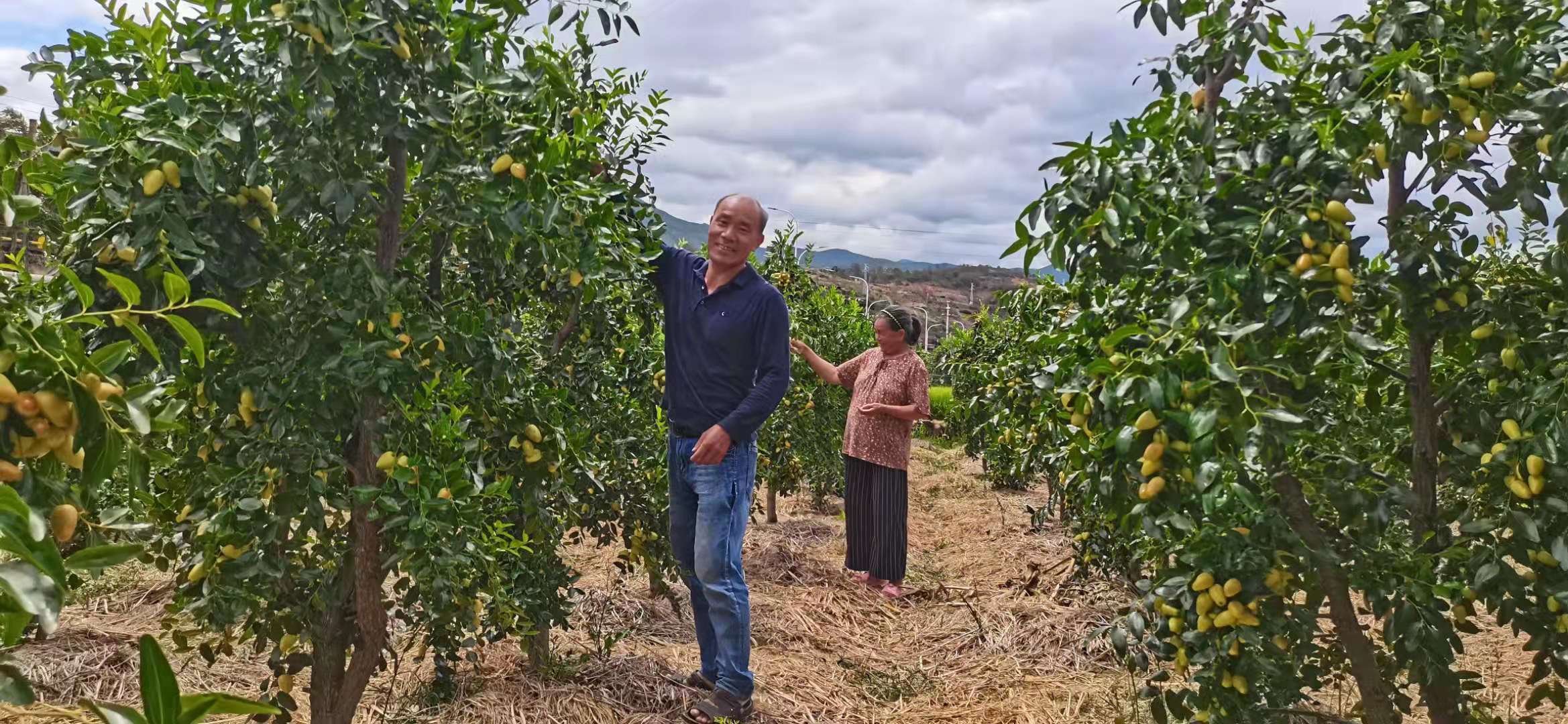 南澗縣西山跳菜村村民李汝芳和趙維進喜摘小棗。(南澗彝族自治縣創建民族團結進步示範縣領導小組辦公室供圖)