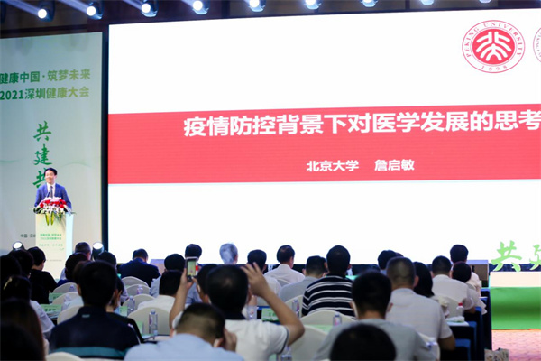 中國工程院院士、深圳灣實驗室主任、國家973重大基礎研究專案首席科學家詹啟敏在題為《疫情後的中國醫療健康新趨勢》的主題報告中指出,疫情發生以來,我國採取了一系列的社會應急和公共衛生干預措施,疫情得到迅速遏制,堅定了廣大民眾的抗疫信心,為國際上其他國家抗疫提供了有效的模式和經驗,本次疫情讓國人從國家安全、社會民生、經濟發展多角度再次認識衛生和健康事業的重要性。