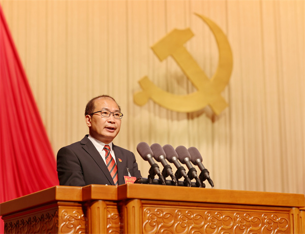 王永禮代表中國共產黨泉州市第十二屆委員會向大會作報告(攝影:泉州晚報社記者陳英傑)