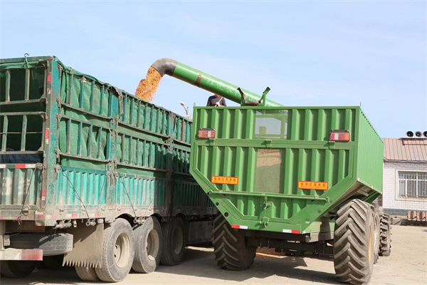 韓燈亮說:「這幾年天氣澇,大車進不去地。我們生產的拖車輪胎寬83.5厘米,進地不會陷進去。有了這台車農民不用擔心糧食拉不出來了,而且糧食不用落地,直接缷到大車上,既節省時間又節約成本,還不浪費糧食,確保了農民糧食顆粒歸倉。」 (馬淑芬 王琳)