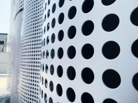 「零碳配電站」通過在牆體中加入保溫隔熱層,從而達到隔斷熱傳遞的作用。同時,在建築外牆加裝遮陽板(穿孔鋁板)外塗熱反射塗層,遮陽板在太陽光照射下可產生溫度調節的效果,熱反射塗層折射92%的不可見光。