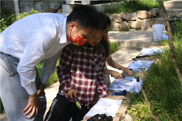 景區內開展植物拓染活動,吸引了不少小朋友參與