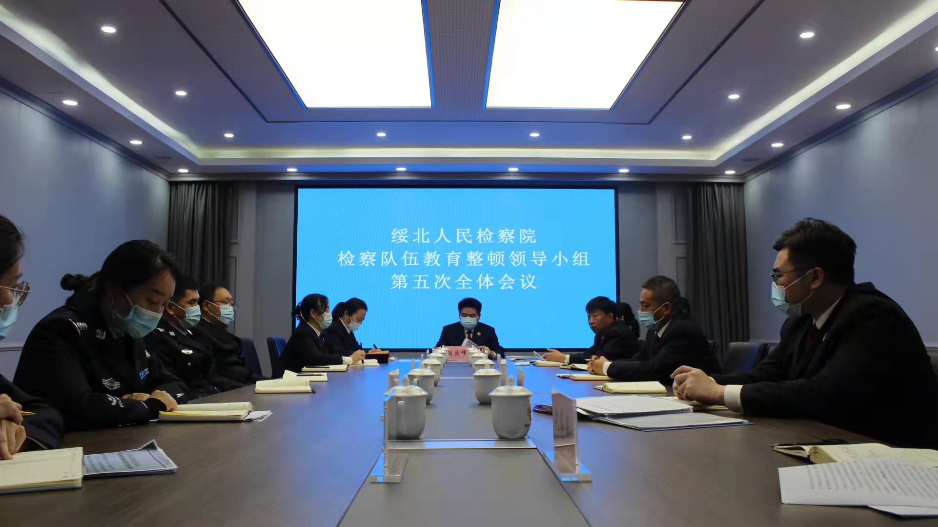 日前,黑龍江省綏北人民檢察院召開檢察隊伍教育整頓領導小組第五次全體會議,學習傳達黑龍江省政法隊伍教育整頓領導小組辦公室《關於組織開好第二批教育整頓單位黨員領導幹部專題民主生活會的提示》(以下稱提示)文件精神。綏北人民檢察院黨組書記、檢察長、院檢察隊伍教育整頓領導小組組長劉慶峰主持會議,領導小組成員參會,黨支部委員及各黨小組組長列席會議。