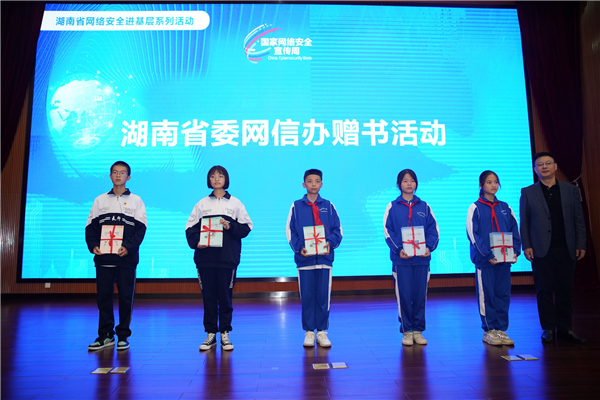 活動現場,湖南省委網信辦網絡安全協調和數據技術處處長劉志勇發表致辭,並代表湖南省委網信辦為中小學生帶來了用網法寶,給中小學生代表贈與了一批《信息和網絡安全教育》書籍。望城區人民政府副區長、公安分局局長廖勇為網絡安全應急技術支撐單位和專家頒發了證書和聘書。