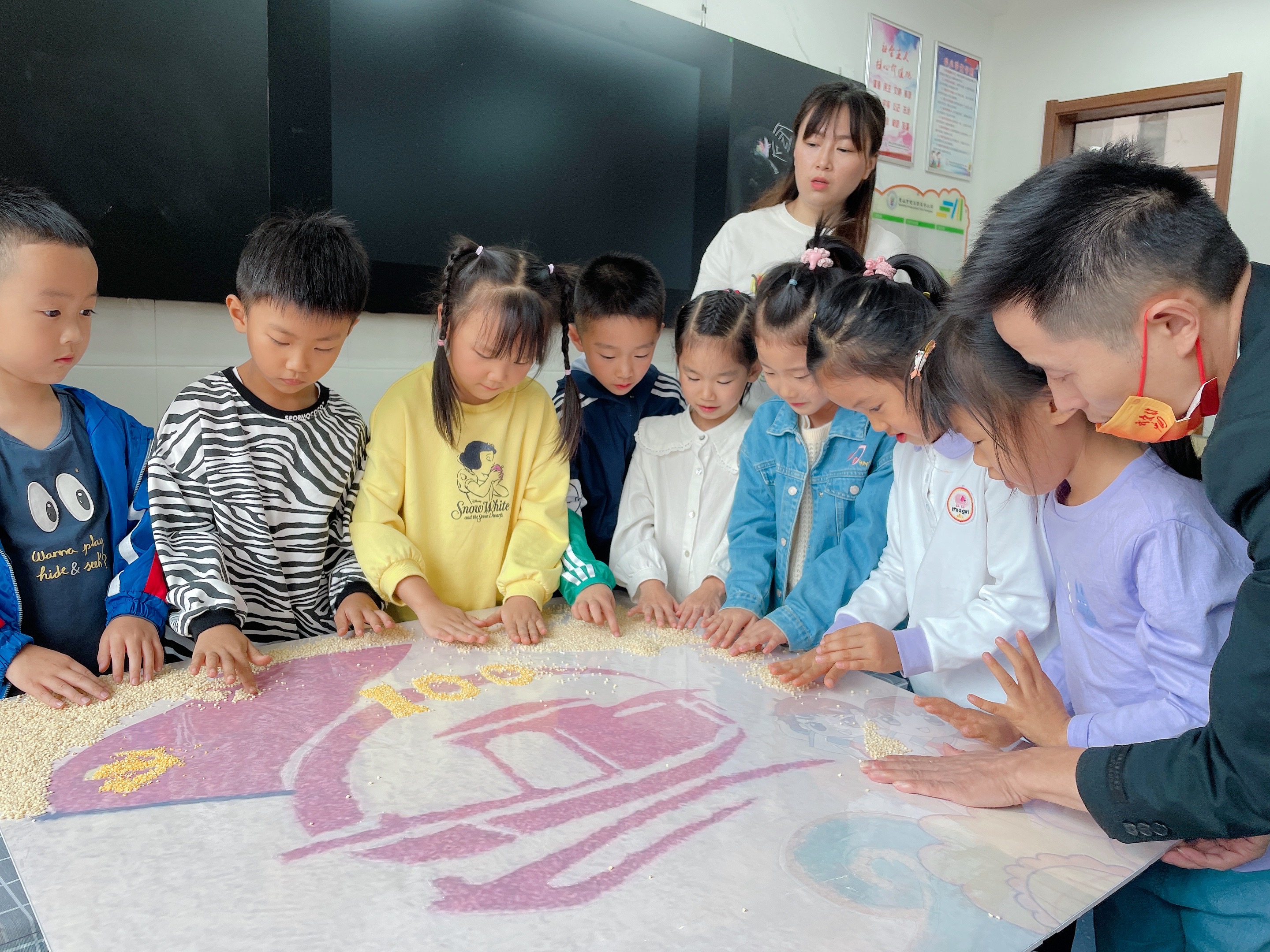 黃山市屯溪百鳥亭副校長葉丹介紹, 通過開展曬秋活動,讓學生自己動手用五穀雜糧拼出各種愛國主義圖案,讓學生親身感受祖國欣欣向榮的景象,體會到中國共產黨的偉大。(記者 吳敏 通訊員 江偉 呂越)