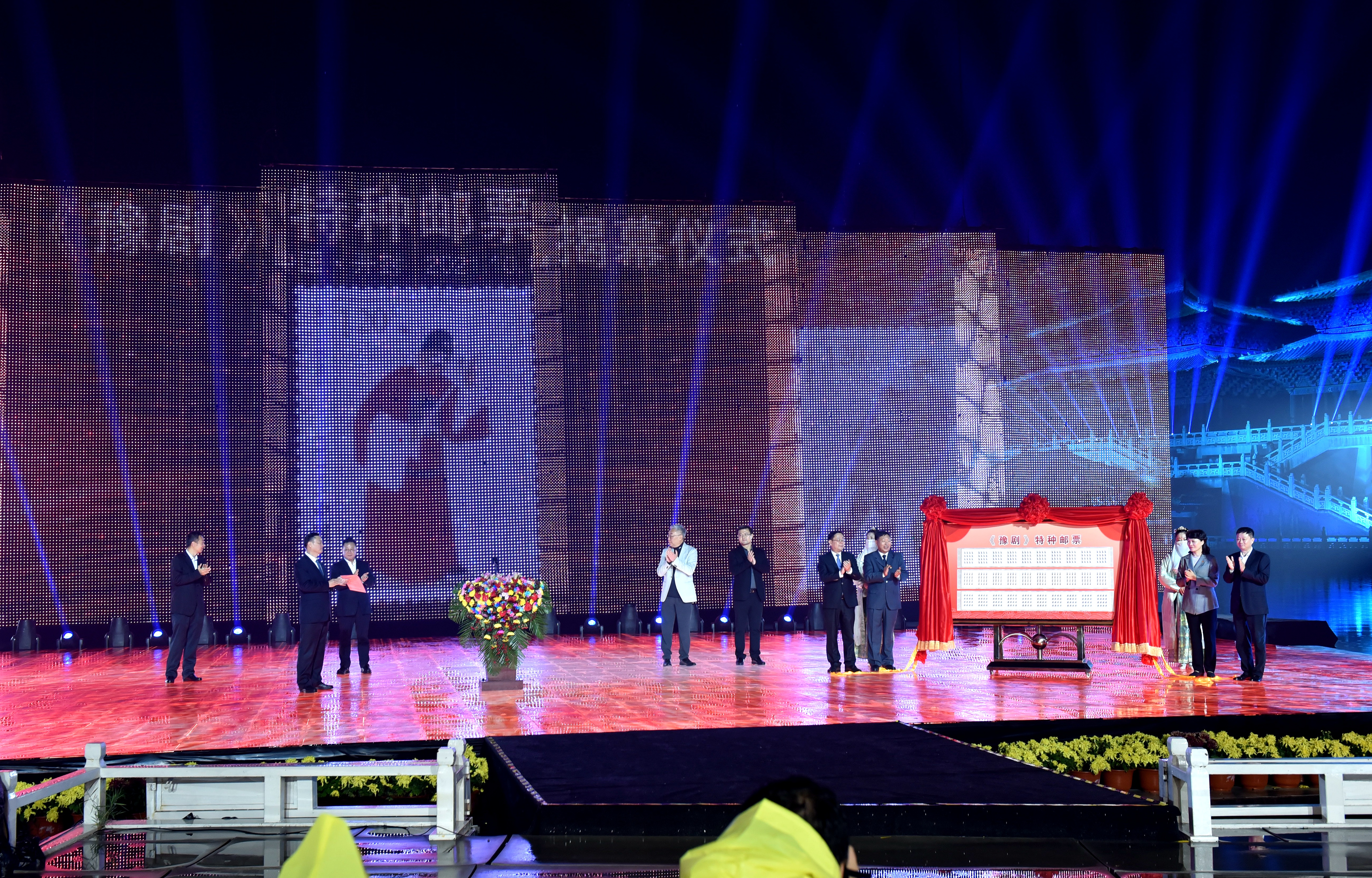 當晚,開封市委副書記盧志軍、中國郵政集團有限公司郵票發行部總經理顧軍、開封市人大副主任于吉良、開封市政協副主席趙潔共同為《豫劇》特種郵票揭幕。