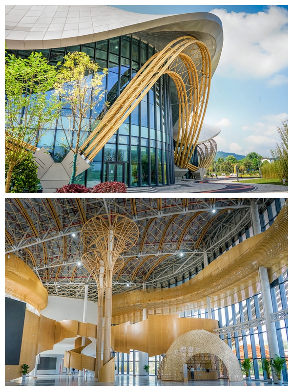 首例採用鋼竹混合結構承重建築體。三項「行業之最」:以竹拱為核心概念最大的單體建築;以圓竹作為承重結構建築面積最大的建築;以竹拱為外裝飾單拱跨度最大的建築。