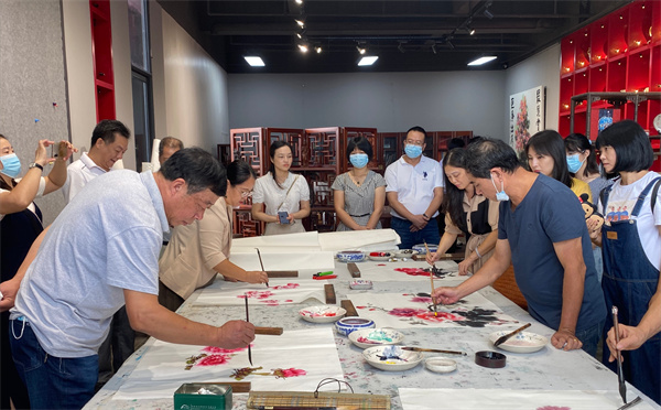 隨後,汕尾市書畫院與洛陽平樂牡丹書畫院簽訂了合作交流協議,並舉辦了文化產業分享會。會上,郭泰森老師分享了自己打造「中國牡丹畫第一村」平樂村的經驗心得。他說,在平樂村,有一群熱愛藝術的農民畫家,出於對牡丹的別樣感情,他們農忙時扛鋤頭,閒時拿畫筆在宣紙上「耕作」,抒發對美好生活的熱愛,從種花、賞花到畫花,用畫筆畫出一片國色天香新天地。如今的「平樂牡丹畫」形成了以中國傳統寫意繪畫技法為主,飾以醇厚色彩,花朵雍容艷麗,神韻猶存,枝葉生動灑脫,遠望有氣勢,近看透筆墨的特色。