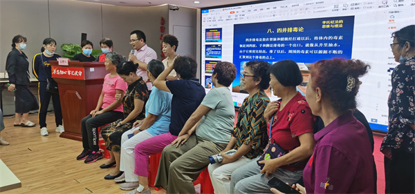 王磊瓊首先為老人們介紹了虎符刮痧的使用工具及治療原理,並通過圖片案例展示了老年人常見的一些疾病及治療手法。在講解過程中,老人們與王醫師熱情互動,王醫師也就老人們的疑問一一做出了解答。活動第二環節,王醫師們邀請老人上台,現場給大家實操了虎符刮痧的手法技巧,在講解的過程中根據不同的病症介紹了相關的穴位,教授簡單基礎的手法讓老人們在家也能操作,並現場為老人進行刮痧治療。在場老人表示收益匪淺。