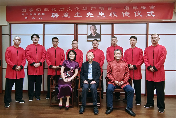韓競生表示,正式收「入室弟子」還是第一次,這8個人以後就像自己的孩子一樣,除了「授業」之外,更要「傳道」、「解惑」,和他們成為事業共同體,增強團隊凝聚力,共同把「一指禪推拿」這個國家級非物質文化遺產項目傳承好,發揚光大傳統中醫診療法。」